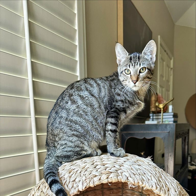 Jubileena Bing-Bing is a lovely DSH gray tabby female born approximately 11/21/2026. Meet Jubileena Bing-Bing! With a name as delightful as Jubileena Bing-Bing, it's no surprise this sweet tabby brings so much joy wherever she goes! Jubileena is the perfect blend of playful and snuggly. By day, she's all about …