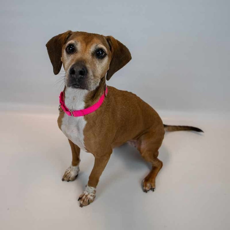 Delores is a senior female Hound (medium) who found a forever home at Mostly Mutts Animal Rescue & Adoption, Inc. in Kennesaw, GA.