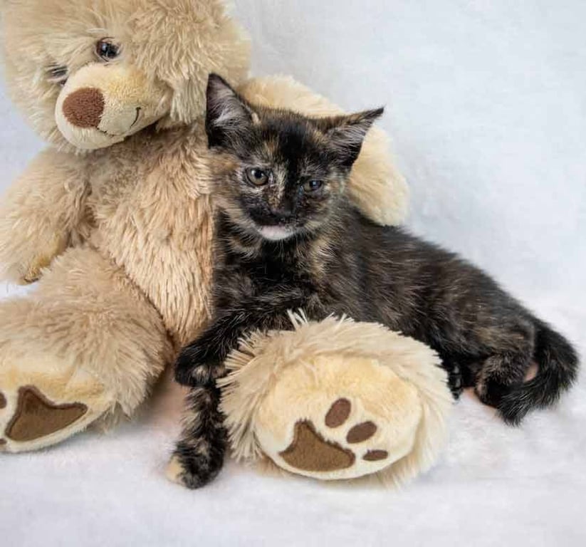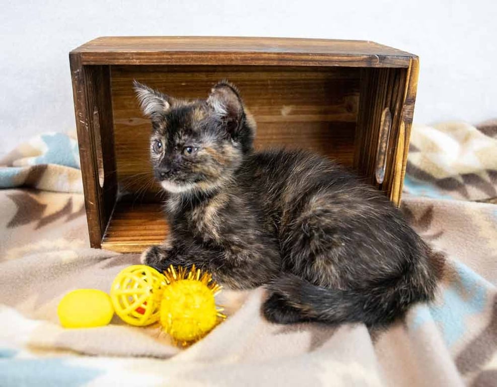 • PERSONALITY INFORMATION: I'm a sweet, shy young kitten who loves playing with my kitty siblings. I can be a little "spicy" and unsure with people at first, but the wonderful volunteers spend time holding me and helping me feel safe and loved. With their gentle care - and continued love, cuddles, and socialization from my new family - I'm blossoming into a loving and more confident companion.