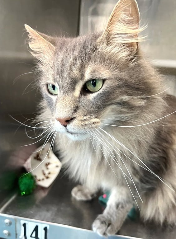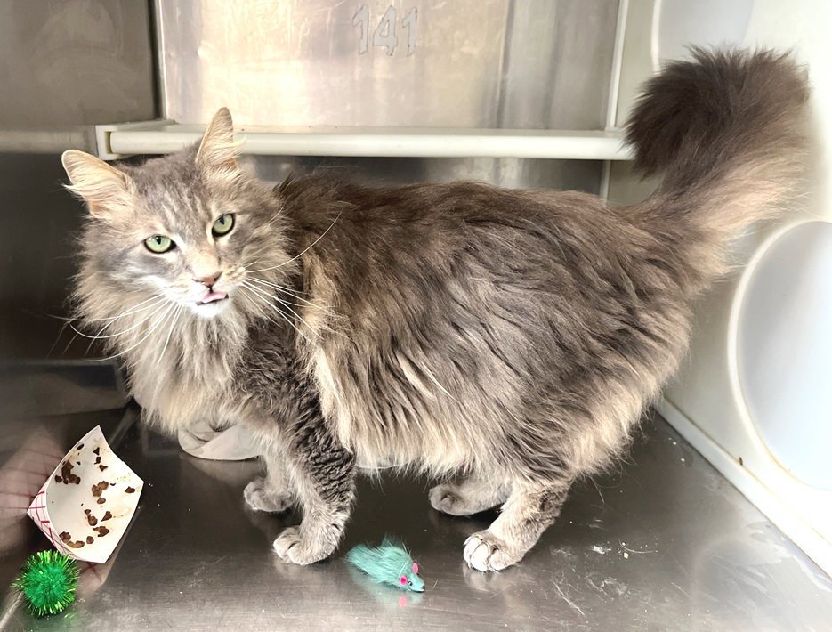 Mixed Breed No Special Needs Vaccinations Current Color: Gray Long Coat Size: Medium