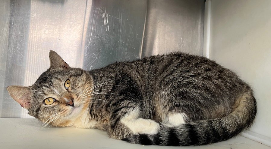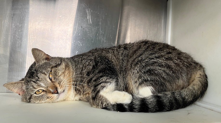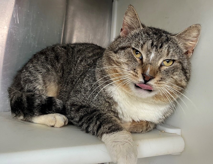 Howdy, my name is Uncle! It's nice to meet you, and I do love meeting people! I'm a brown and white tabby guy who is about 1 year old, with a very thin white streak on my nose. I'm absolutely an expert on curling up into a tight ball for snuggling. I also am all about being carried around and getting petted all over, and if you do, you'll definitely hear me purr in delight. I love to be pet on my neck and snuggle against yours. I am also what is known as a "chonk", which is a specific kind of extra awesome cat--at least that seems to be what it means, because everyone seems so happy to tell me I'm a chonk. Oh, and I should mention that I'm FIV+, which means I need to be an indoor-only cat. I should be able to live a completely normal life as long as that's the case.