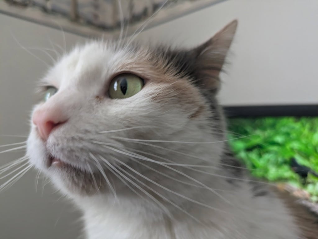 is highly food-motivated and loves Churu and almost any meat. She is
