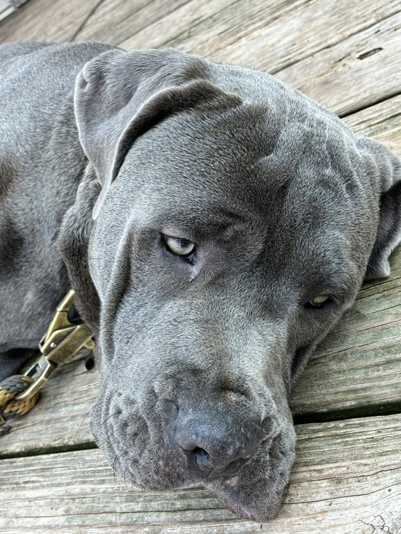 Cyrax is a young unknown Cane Corso Mastiff (large) available for adoption at The Buster Foundation Pit Bull Education and Rescue in Belleville, MI.
