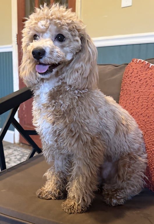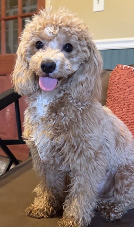 Lala is a tiny, velcro-hearted bichon-poodle mix who bonds deeply with her people and comes alive in the company of other playful dogs. She's shy at first, but once you're "hers," she is all love, joy, and a little bit of sparkle.
