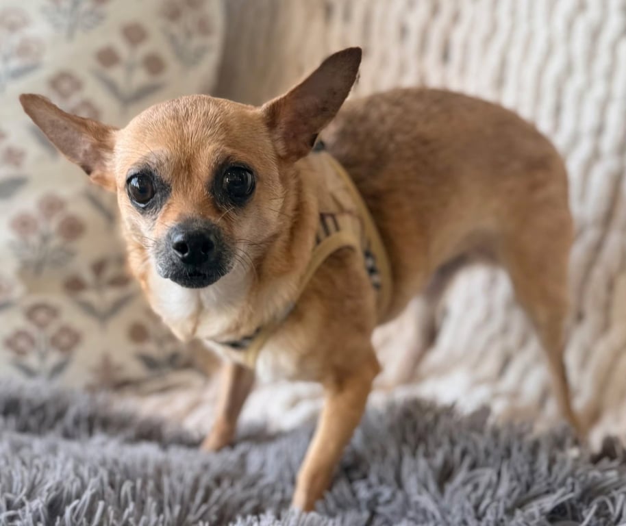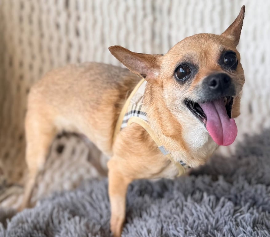 Calm Cocoa is one of those shy and chill type of Chihuahua girls that barks only when she hears a new sound that isn't supposed to be there and whose biggest desire is to lay on the sofa near her person or sit on their lap for the longest of times. This sweet girl that always has a smile, is golden not only in color but also in character and personality. She is a "character" as they say and she just a few things she does in her day.