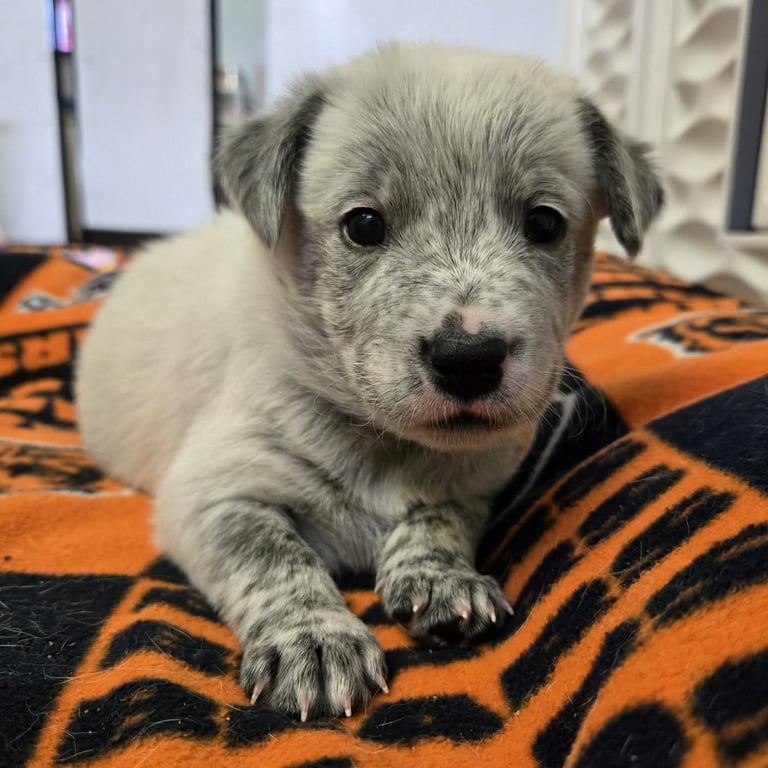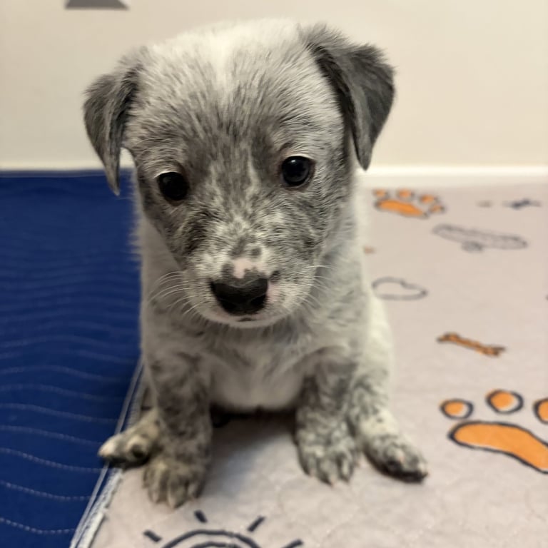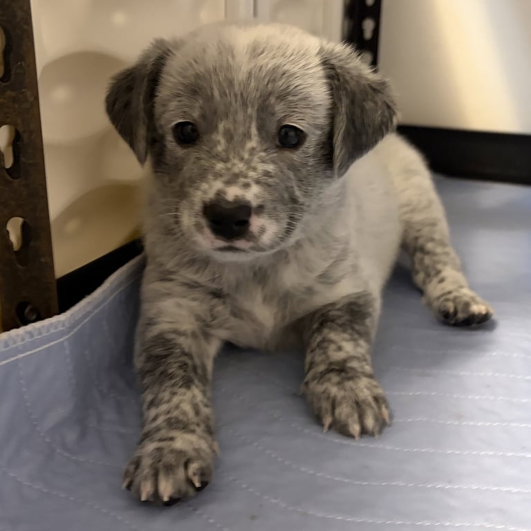 Logan is a baby male Australian Cattle Dog/Blue Heeler (medium) who found a forever home at Wish Bone Canine Rescue in Normal, IL.