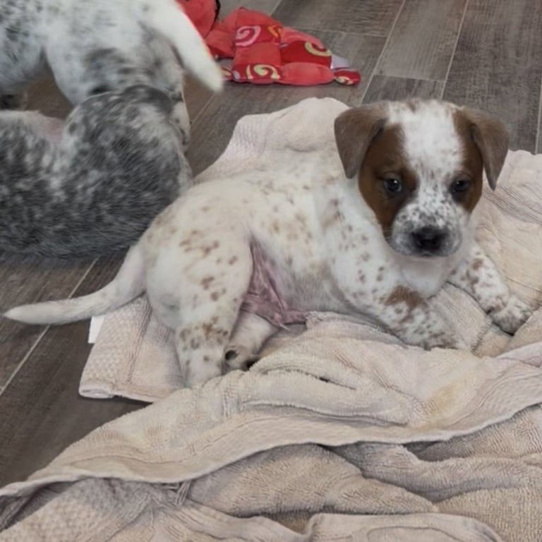 Dean is a baby male Australian Cattle Dog/Blue Heeler (medium) available for adoption at Wish Bone Canine Rescue in Normal, IL. Adoption fee: 350.