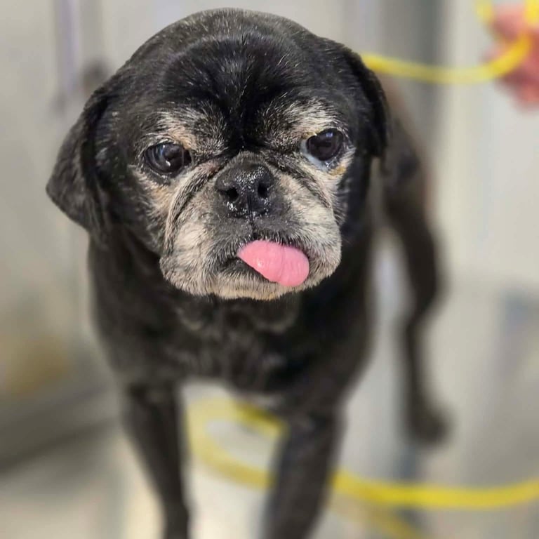 Meet Estelle, a gentle little soul with a heart full of quiet love and a soft spot for cozy companionship. She's a 12 year old Pug mix who weighs about 18 pounds. This sweet senior is the kind of dog who doesn't ask for much, just a warm place to …