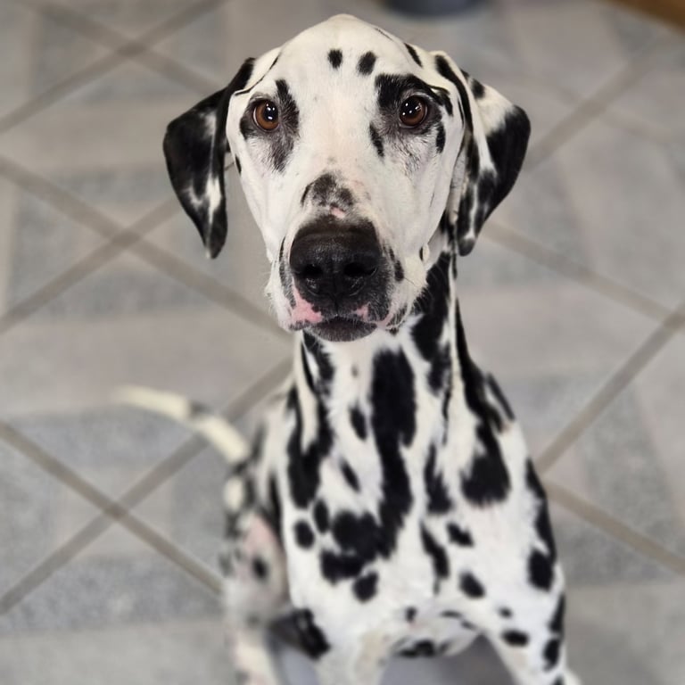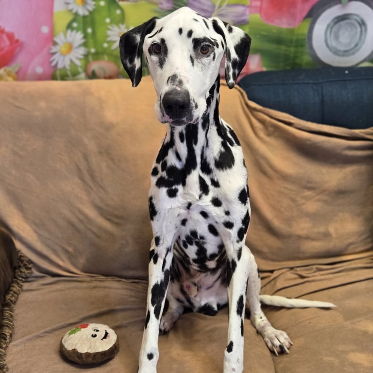 Mr. Pickles is a 7-year-old Dalmatian weighing about 47.5 pounds, and he's a beautiful example of resilience, hope, and the healing power of love. This handsome guy is still working on filling out a bit, but what he already has in abundance is charm, heart, and a joyful spirit that's impossible not to love.