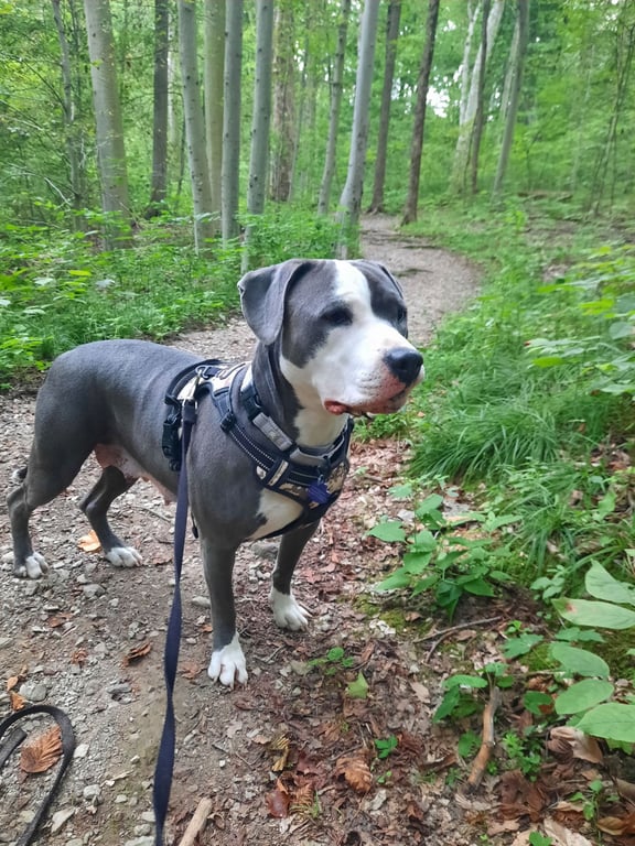 The incredibly gorgeous 2-3 year old Nova is still waiting for a loving home and family. She was recently described as a typical loving pitty by her trainer, and I agree! She weighs about 65, and is one of those dogs that somehow ends up in your lap on the couch in some pretty weird positions, and has fallen off the couch more than Nova would like you to know. LOL. She has done great in the home, but when alone I still crate her. She has a blast with walks or hikes, and wears a special harness that helps her from pulling as much. She. Is. Strong. I would love a 6 foot fence for her, as she LOVES running in the backyard full speed when she gets the zoomies. She also plays fetch and loves toys, and interactive games for treats. She will be great as an only dog, or I will request a proper meet and greet if you have a dog already.