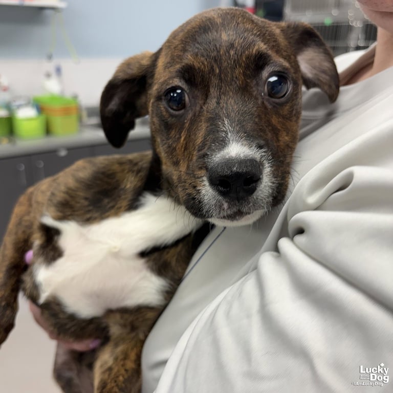 Due to this puppy's young age, she/he has not yet been spayed or neutered. As part of the adoption contract, it will be your responsibility, as the adopter, to ensure that this is done no later than May 12, 2026. There are NO EXCEPTIONS and NO EXTENSIONS to this date. A non-refundable spay/neuter deposit will be collected if you would like Lucky Dog to pay for this animal to be spayed/neutered at one of our low cost partner vets.