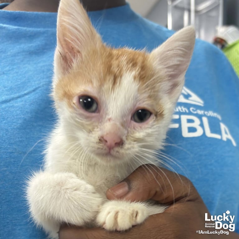 Due to this kitten's young age, she/he has not yet been spayed or neutered. As part of the adoption contract, it will be your responsibility, as the adopter, to ensure that this is done no later than 7/23/26. There are NO EXCEPTIONS and NO EXTENSIONS to this date. A nonrefundable spay/neuter deposit will be collected if you would like Lucky Dog to pay for this animal to be altered at one of our low-cost partner vets.