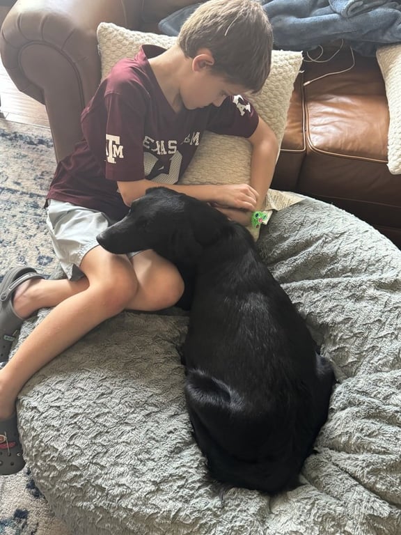 General Notes | Want to adopt this dog? Please do not email us. Please fill out the Adoption Application ASAP, and an Adoption Coordinator will be in touch within a few days. Our standard application processing timeline is 12 - 14 days. Personality | Blossom has a sweet and gentle nature. She may be a bit shy at first in new environments, but she warms up quickly and becomes affectionate and comfortable once she feels safe. Blossom is the sweetest soul! Her foster describes her as a dream dog!Story | Blossom was dumped in rural Texas very pregnant just days away from giving birth. MHLM was able to move quickly and get her into a foster home just in time to give birth to 10 perfect babies! We think she's a golden retriever mix who ended up with a black coat as she was dumped with another pregnant golden who is the same size and age as she is! Golden retrievers often end up with black coats when they're mixed with other breeds. :)Other Dogs | Friendly with other dogs!Cats | Blossom is great with kitties and is being fostered with a cat. Children | Amazing with kids! She absolutely adores kiddos! She isn't afraid of wheelchairs and does well around children with autism.Training | In progress!Leash | In progress!Activity Level | Moderate. Health Notes | Blossom has a front leg limp that appears consistent with a possible BB gun injury.Thank you! | Adoption Donations | Our adoption donations are $575 for dogs 8 weeks to 1 year old, $525 for 1 - 6 years old, $475 for dogs 7 - 10 years old, and $350 for 11+ years of age. Purebred dogs regardless of age are $625. These minimum donations help to defer the costs of initial vet care, food, transportation to Colorado, and supplies while in foster care (that currently average over $750 per dog).