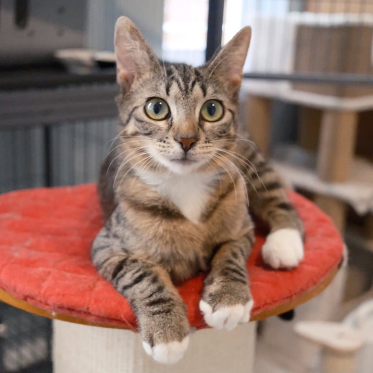 Born around October 22, 2025, Glitter is a petite, gentle little girl with a sweet personality that shines just as brightly as her name. She loves to spend her days playing with her foster friends and enjoying the simple joys of kitten life.