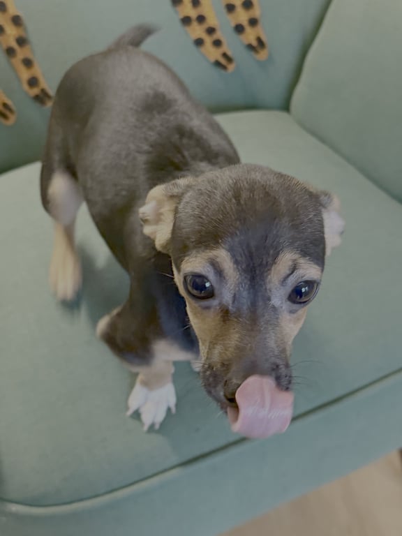 Sweet Velma and her siblings Daphne and Fred came to us from sad circumstances. They were being kept outside without access to proper food and water. When they arrived with us they were very emaciated and fearful. They have been in one our loving foster homes for a few weeks and have gained weight and a little more confidence. They are still small at only around 6 lbs and are 4-5 months old. They will remain small as adults.