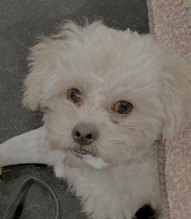 Cheddar is a baby male Poodle (Miniature)/Maltese (small) who found a forever home at Saving Great Animals in Bellevue, WA.