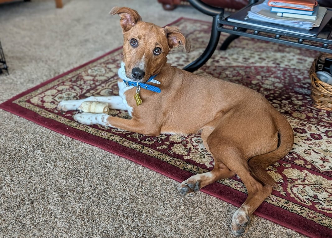 Looking for a tiny athlete with a gentle soul? Meet Sheilah, who appears to be a 10-month-old Heeler/Cattle Dog/ Pinscher mix who is just as sweet as she is speedy. At just under a year old, she's in the prime of her "puppyhood," discovering the world one cautious step at a time.