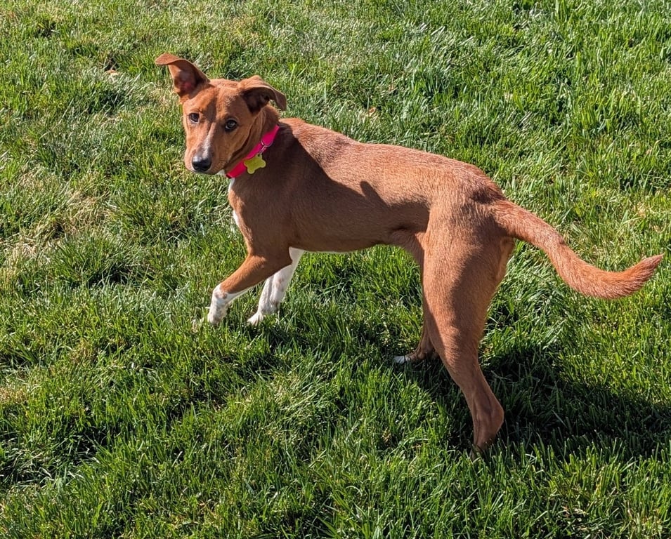 Meet Sheilah: The Shy Sprinter with a Heart of Gold! Looking for a tiny athlete with a gentle soul? Meet Sheilah, who appears to be a 10-month-old Heeler/Cattle Dog/ Pinscher mix who is just as sweet as she is speedy. At just under a year old, she's in the prime …