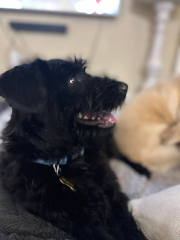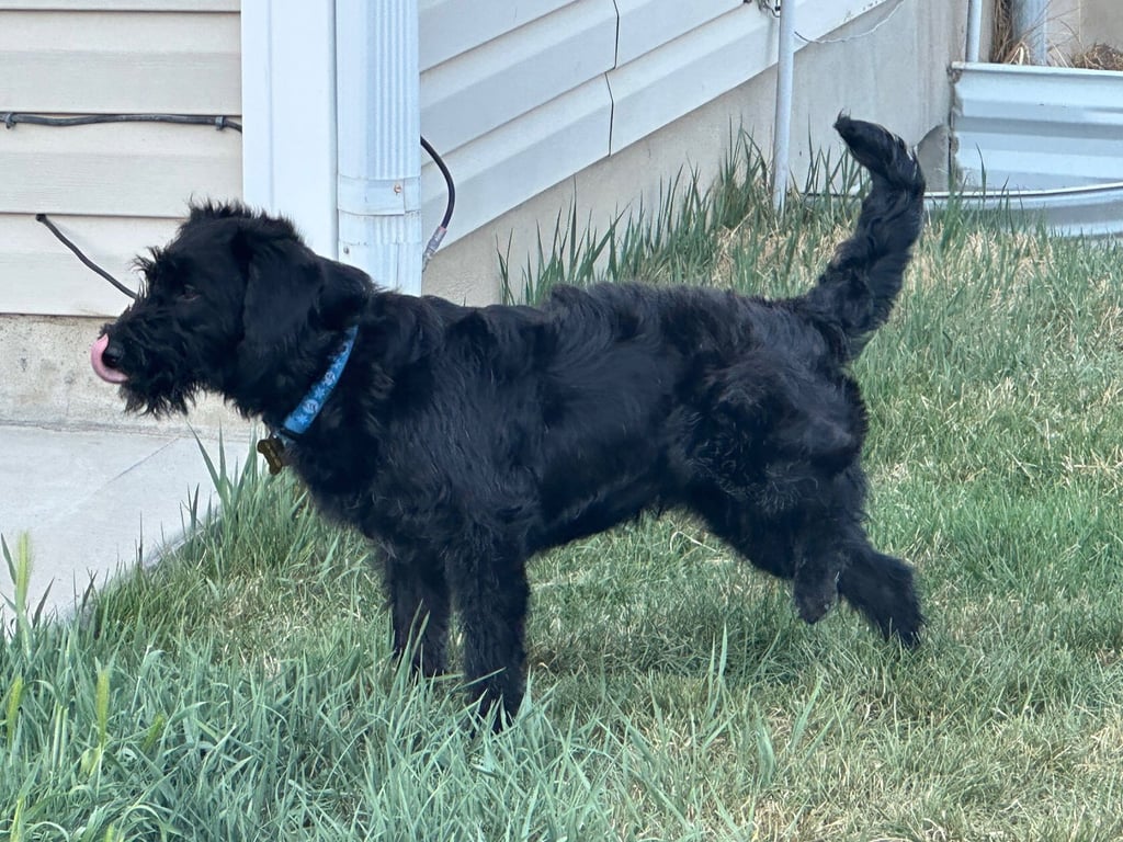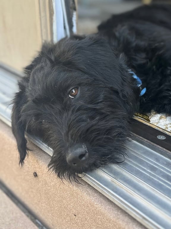 Ridgee is a baby male Poodle (Standard)/Australian Cattle Dog/Blue Heeler (medium) who found a forever home at Rescue Rovers Dog Adoptions in Sandy, UT.
