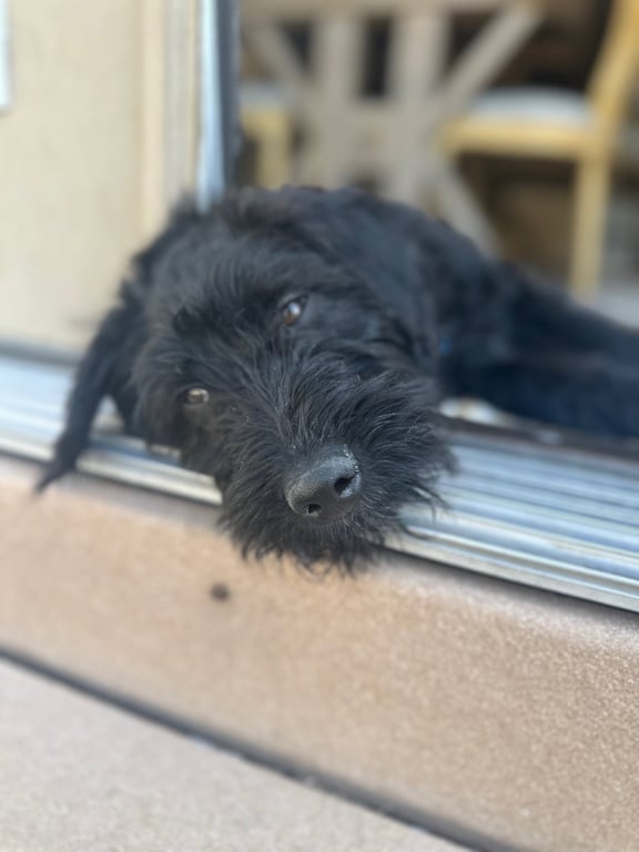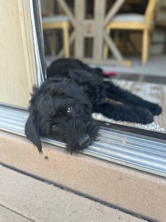 Hi, hello! My name is Ridgee, but you can call me Your New Favorite Shadow! I'm a 6-month-old poodle/heeler mix with a very important job: being as close to my humans as physically possible at all times. Some people say "velcro dog"… I say personal assistant. Need help walking? I'm …