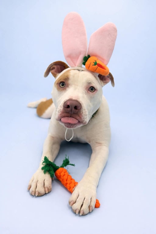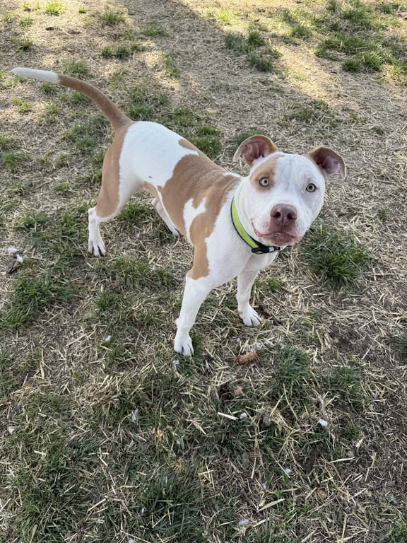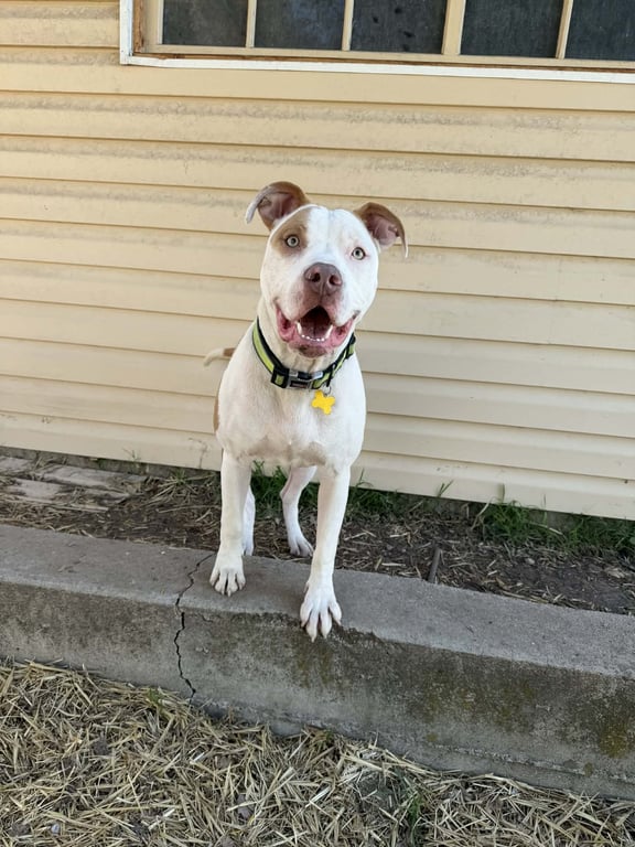 Hi, I'm Pibble I'm a 10 month old pitbull mix, weighing about 50 pounds and I'm pretty sure I'm done growing… but my personality? Still getting bigger every day. Let me tell you my favorite thing in the whole world: people. I have absolutely no idea what "stranger danger" is. …