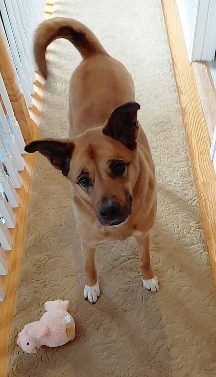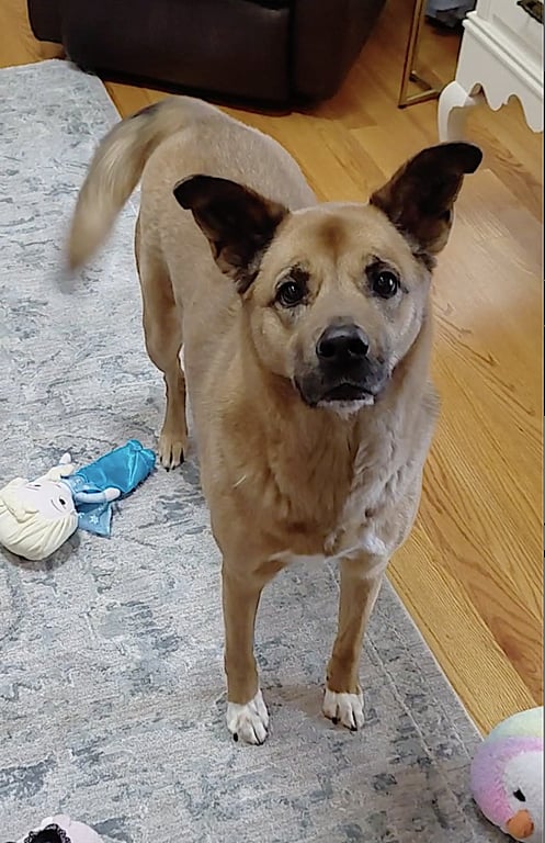 A gentle almost seven-year-old Akita/Boxer mix currently in Southington, CT, whose essence is a golden glow of warmth wrapped in soft white accents and a heart full of affection. Phoebe is the kind of companion who turns ordinary days into something special, whether she is trotting happily beside you on a car ride or lounging peacefully nearby as the day unfolds.