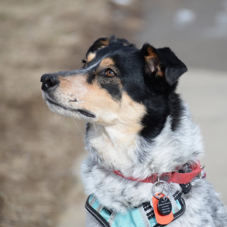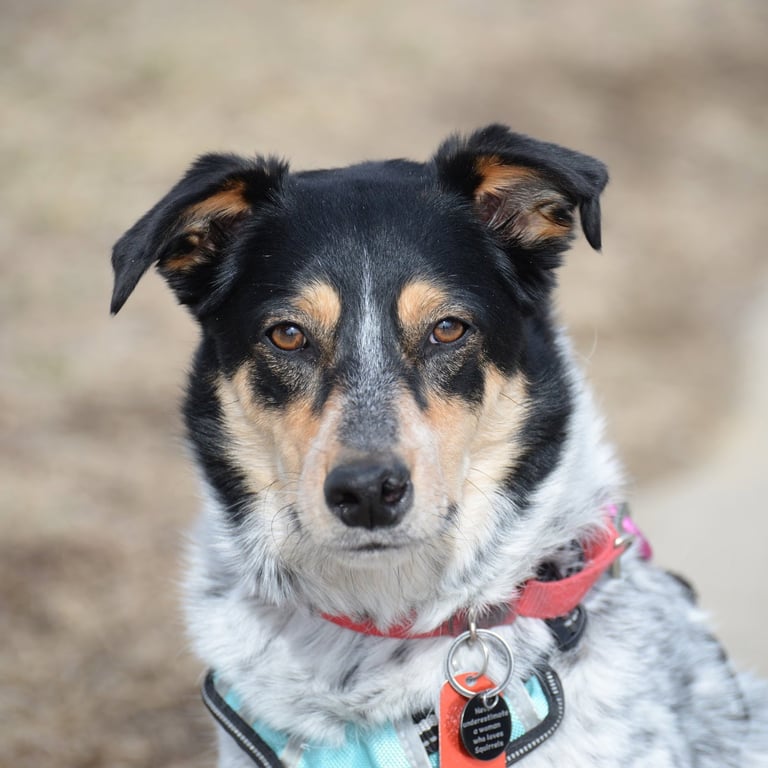 Do you like Squirrels with bright eyes and fluffy tails? Little Miss Squirrel is an adorable three-year-old Cattle Dog mix with thoughtful intelligence. When she smiles, it's like the sun is coming out. Squirrel would love to live with an individual or a couple for whom she can provide nighttime cuddles and daytime window security services. She has completed several Dog Training classes and one of her favorite games is 15-minute "Training" to learn anything new from Agility commands to Tricks which she learns quickly. Squirrel loves to snuggle, play her Brain Games, and snooze next to her people while they work. Although she is young, Squirrel is very calm and somewhat low energy. She loves car rides and long walks. She is great at the vet's office, grooming, and nail trims.