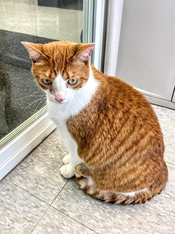 Not Mixed Breed Vaccinations Current Color: Orange and White Short Coat Size: Medium