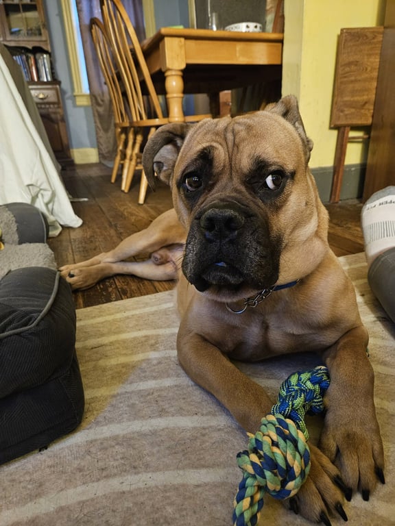 Rocco is a adult male Boxer/Mastiff (large) available for adoption at Chelsea's Hope Boxer Rescue in Monticello, NJ.