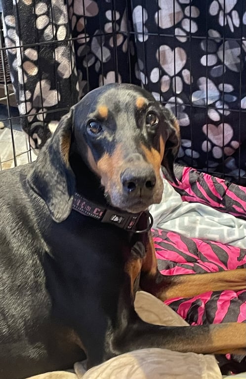 Violet is a adult female Doberman Pinscher (large) available for adoption at Doberman Rescue Minnesota in Minneaoplis, MN. Adoption fee: $400.