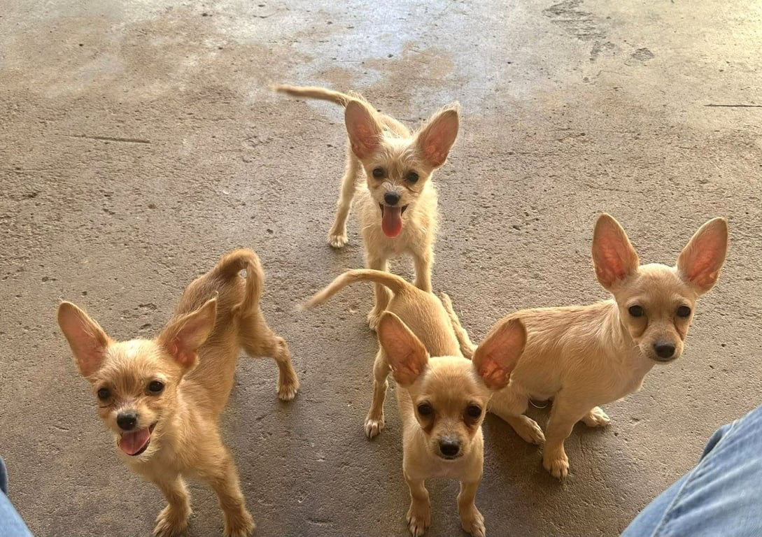 Say hello to April! This adorable puppy was born 12/15/2025; mom is a Chihuahua mix and dad is a Poodle mix. April and her three siblings came to us through a rescue in Hermosillo, Mexico. We help out Huesitos Rescue from time to time when they are over-crowded, and a portion of each dog's adoption fee goes directly to that rescue. April and her sisters are classic puppy, full of love, life, and goofy antics! April and her siblings are all very outgoing and affectionate dogs; they want to be near you as much as possible, and love cuddles and kisses. The puppies also love to run and play and will need a family that is able to keep up with their energy. Just because they are small (April currently weighs 4.8-pounds), doesn't mean they aren't BIG on play-time!