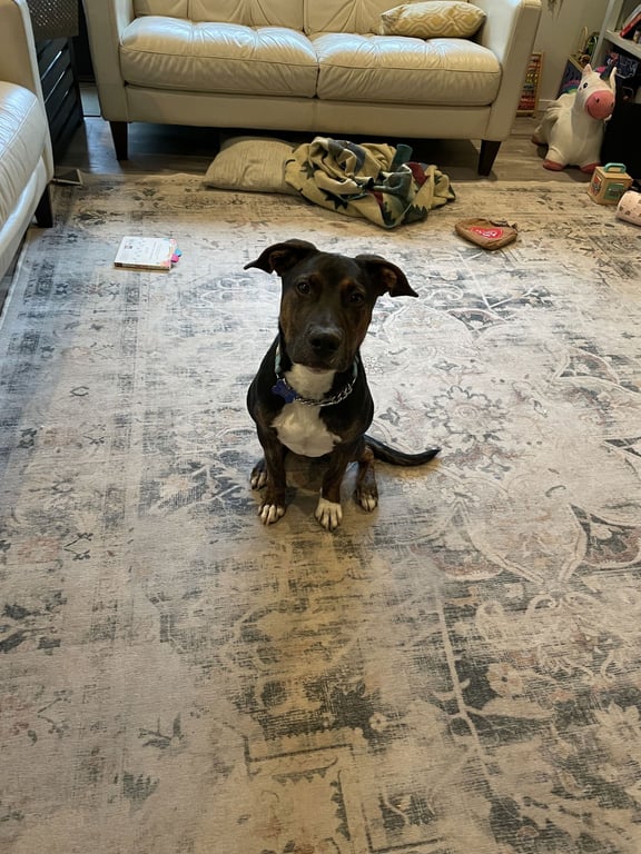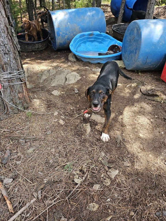 Animal History: Mark Anthony, Cleo and Alexander were born in March 2024 in the middle of nowhere Oklahoma. Sadly, they were found on a property tied to trees with only barrels for shelter in the sweltering heat. Our rescue partners at Furry Freight were alerted to their conditions and reached out to see if we could help and we had to say yes! He arrived to us 7/21/24 very fearful, and after a stint in 'regular' foster care made his way to To the Point Dog Training in Tacoma to get some professional help with basic training and confidence building. He is now available for adoption in the greater Seattle area.