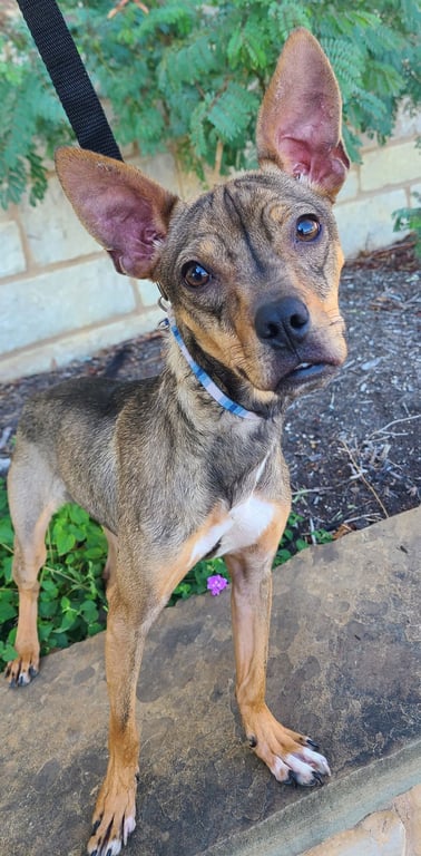 Pickle is a baby male Chihuahua/Miniature Pinscher (small) available for adoption at Sierra's K9 Rescue and Rehab in Pipe Creek, tx. Adoption fee: 300.