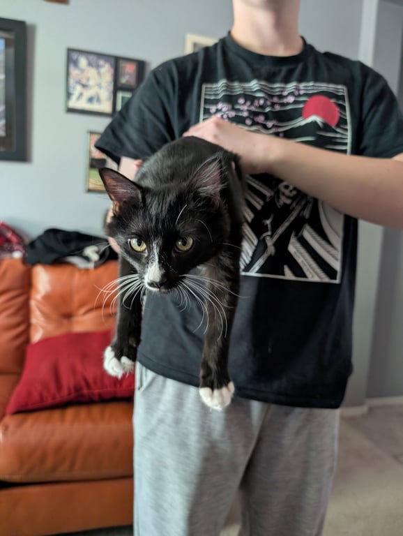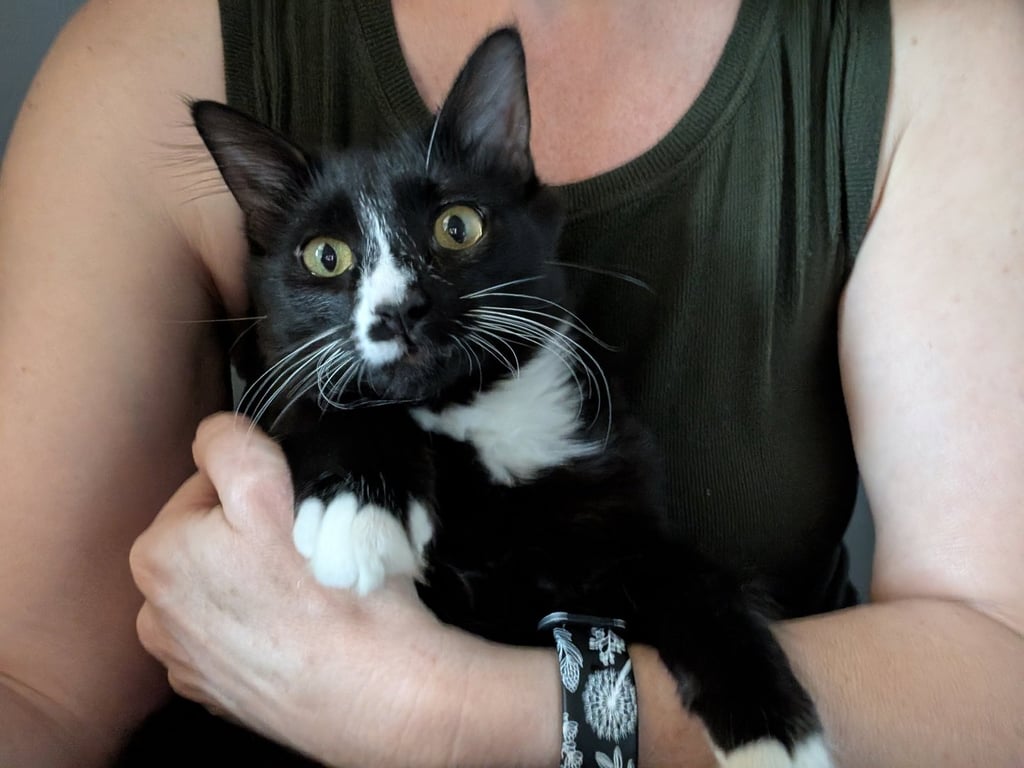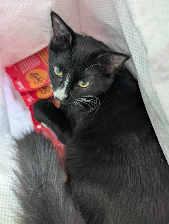 Jessika is a baby female Domestic Long Hair/Tuxedo () available for adoption at Kneading Kitty's Rescue in Litchfield Park, AZ. Adoption fee: 240.