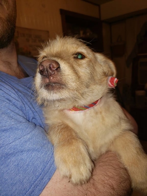 Wednesday Surprise : Scooter is a baby male Wheaten Terrier/Labrador Retriever (medium) available for adoption at Stray Haven Inc in Aurora, IN.