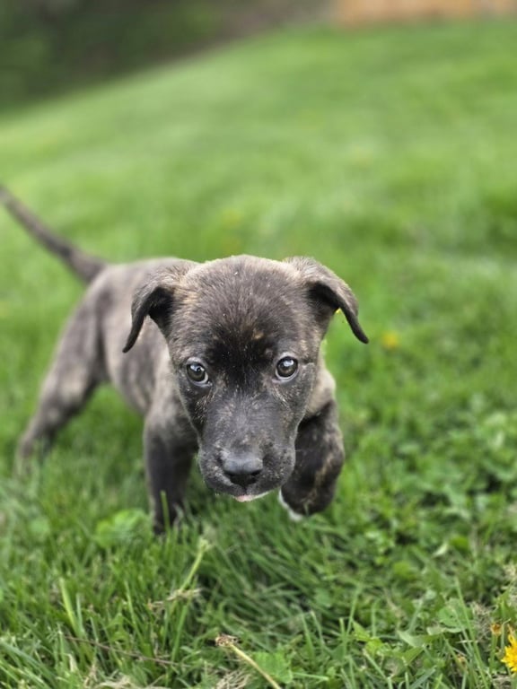SRV Palau : Caryn is a baby female Boxer/Beagle (medium) who found a forever home at Stray Haven Inc in Aurora, IN.