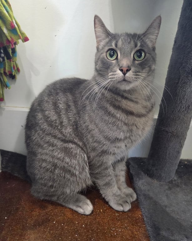 Doian is a 6-year-old gray tabby boy with stunning green eyes that seem to tell a whole story. He may be a little quiet and reserved at first, but once he feels safe, he blossoms into a truly loving and loyal companion. Doian has a playful side and enjoys a …