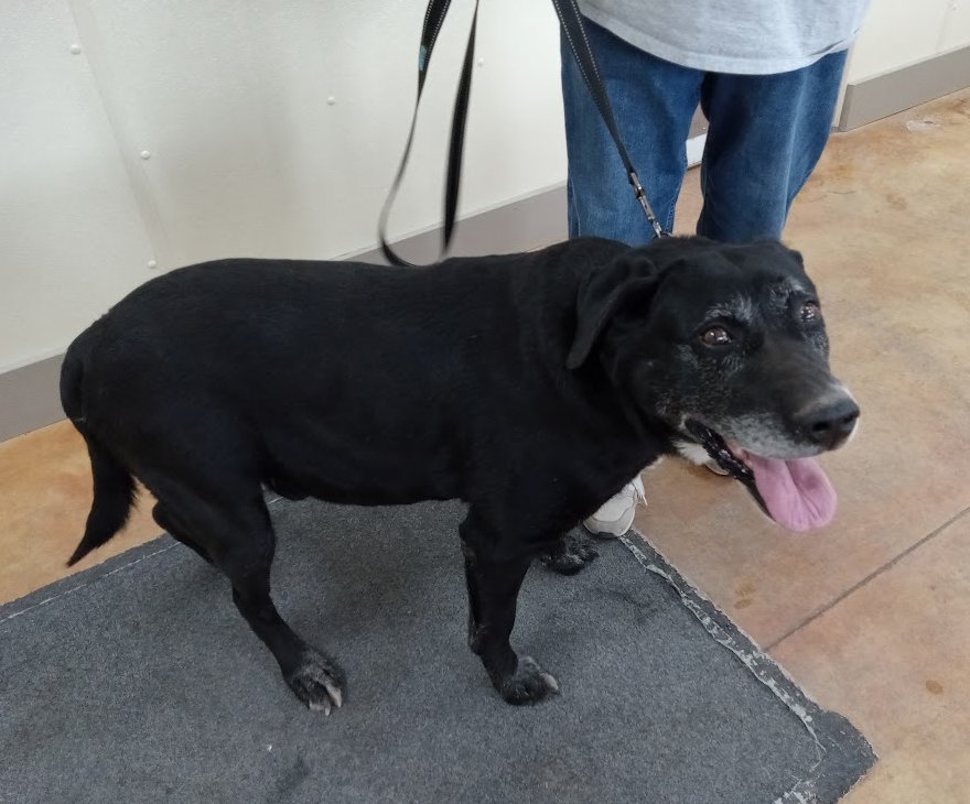 Bob came to us an owner surrender. His owners experienced a huge life change and could no longer keep him. Bob is an approximately 9 year old, lumbering black lab type dog. He was an "outside dog" for most of his life. He was, however, very loved by his owners. He's a happy and affectionate guy who doesn't really demand a whole lot. We will get Bob completely vet checked and neutered soon and his fee is $150.