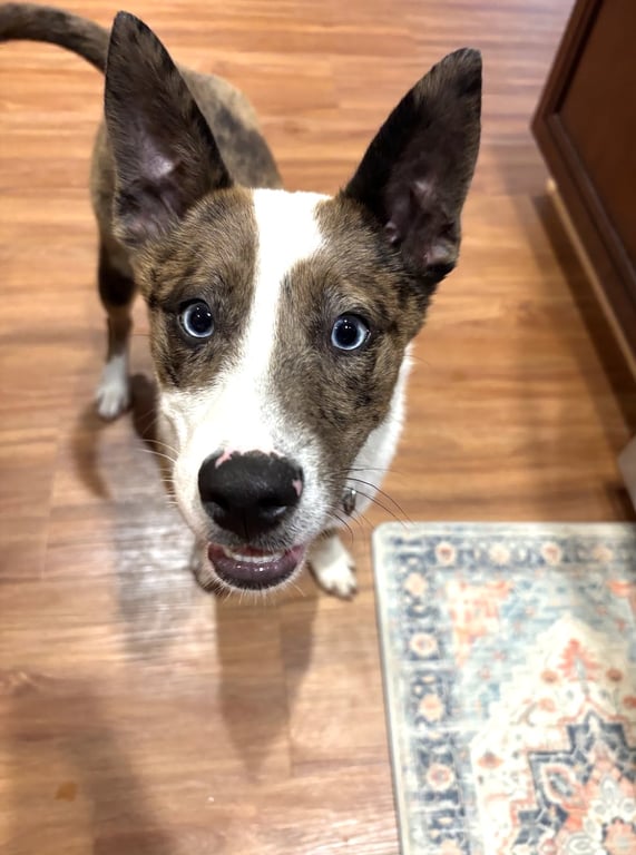 What my foster says: Sheeba has been doing great with her first week here. She's a very sweet girl and everyone who has met her falls instantly in love! Like most puppies - she loves shoes and finding things to nibble. However, she's quickly learned "no" and "off". She didn't seem to know any commands earlier this week but she can now reliably "sit" - so she's a quick learner! She loves being around our resident dog and is usually his little shadow. She is fairly active and VERY playful! Anyone who adopts her will be super lucky to have her!