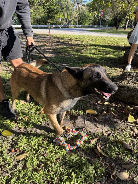 Star is a beautiful 16-month old female Belgian Malinois. Her family has to surrender her as their work schedule has changed and she spends hours by herself, mostly in the backyard, without much to do. The family is super nice and they love her, they are giving her up thinking of her well-being. Let's focus on Star! Star needs an approved foster to be able to transition to the rescue. She is gorgeous! she knows SIT, DOWN, STAY, PAW, COME, HEEL and walks great on the leash. She is VERY toy and treat motivated so she will be super easy to train. Initially she may be a bit weary of strangers, but she warms up pretty quickly and is a pleasure to be with. She has a good off-switch as well and lies down calmly by her owner. She does show a protective instinct, nothing out of the norm with a Malinois. She has not been around other dogs much since she is with this family, she lived with her mom and dad and one sibling till she was 5 months, she came to them at 6 months of age, the month in between wass with a relative of the original family. NO cats or farm animals, she has a very high prey drive. She is great with kids as long as her energy level is managed. All MAD dogs come with a Fi Collar and 6 month subscription. If you are interested in adopting this pet please complete an application at this link