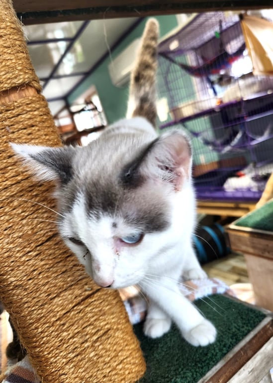 Meatball is a adult male Domestic Short Hair/Siamese (medium) available for adoption at Wild About Cats of Cumberland County in Crossville, TN.
