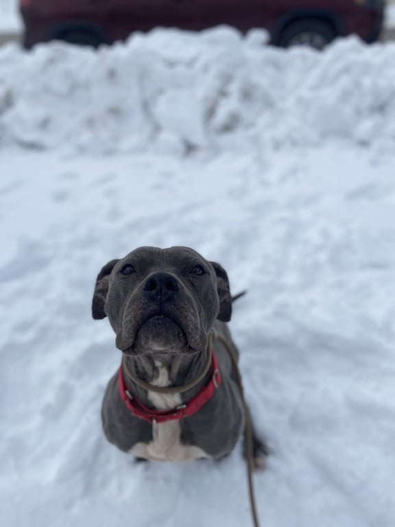 Plow is a adult male Pit Bull Terrier/Cane Corso Mastiff (medium) available for adoption at It Takes A Village No-Kill Rescue in Evansville, IN.