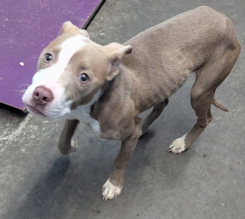 Dozer / Paddy is a baby male Pit Bull Terrier (small) available for adoption at It Takes A Village No-Kill Rescue in Evansville, IN.