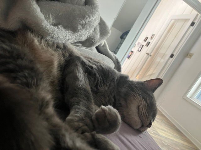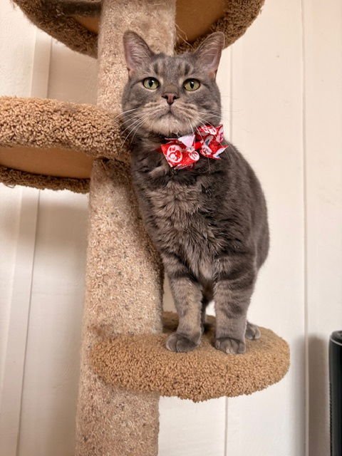 Taz loves his wet food, enjoys playing with toys, and can often be found basking in a sunny spot after climbing to the very top of his cat tree-one of his favorite pastimes! He loves his people and will greet you at the door. He is super smart and knows how to play fetch - he will bring a toy right to you for you to throw again. He also likes to bring you gifts - toy mice and stuffed toy fish to show you that he loves you.