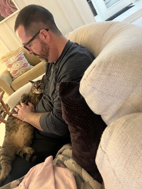 Once we spent more time with her, we discovered that Shadow is far more than "independent" - she is incredibly affectionate. She loves being petted and starts purring almost instantly when you touch her. She has the most expressive tail that happily whips and swishes when she's content, and she absolutely enjoys chatting with her people. She will happily carry on little conversations with you throughout the day.