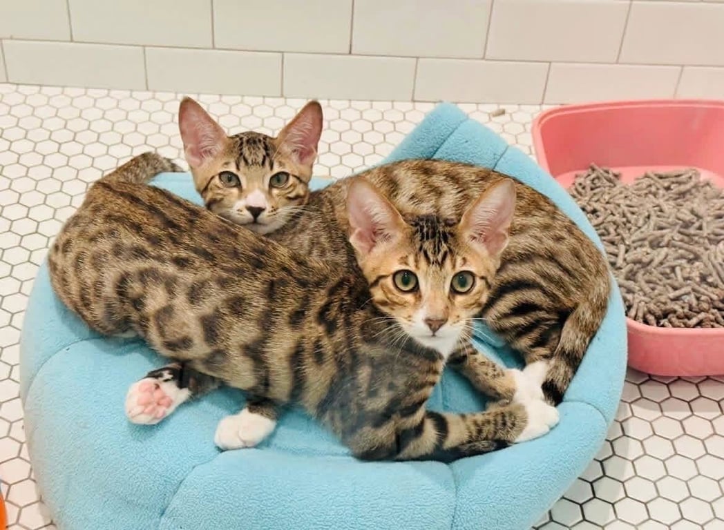 STATLER (white nose) & WALDORF (brown nose) earned their names by relentlessly heckling their foster mom when they were first rescued. Little did she know that she was dealing with something extra special… These boys are Bengal mixes - which means they're basically part housecat, part athlete, part chaos goblin. …