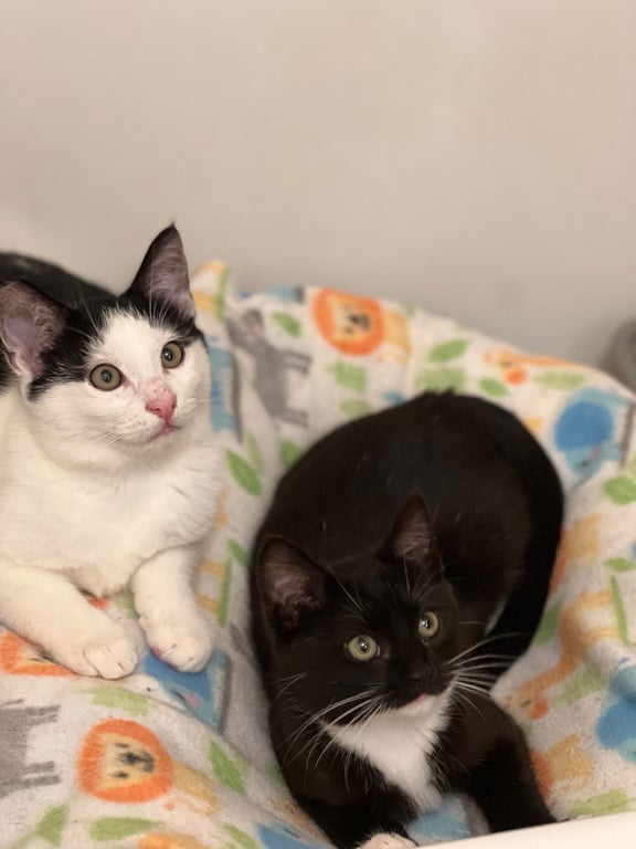 Laverne and Shirley have blossomed into perfect little bundles of kitten joy - sweet, playful, and completely bonded. We would love to see them adopted together.