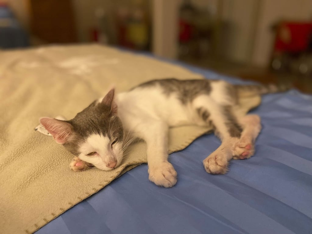 Our amazing volunteers stepped up in an instant. One overheard the "adopters" attempting to return the cats to the store and immediately called us to rush in and save them. Another volunteer jumped into action and offered to foster them on the spot, nursing these fragile little souls back to health.