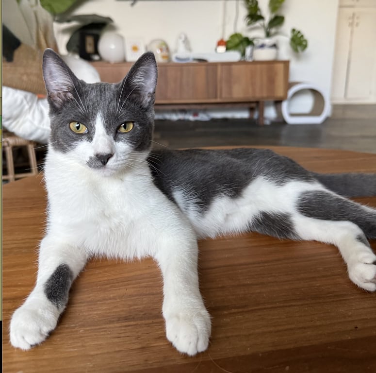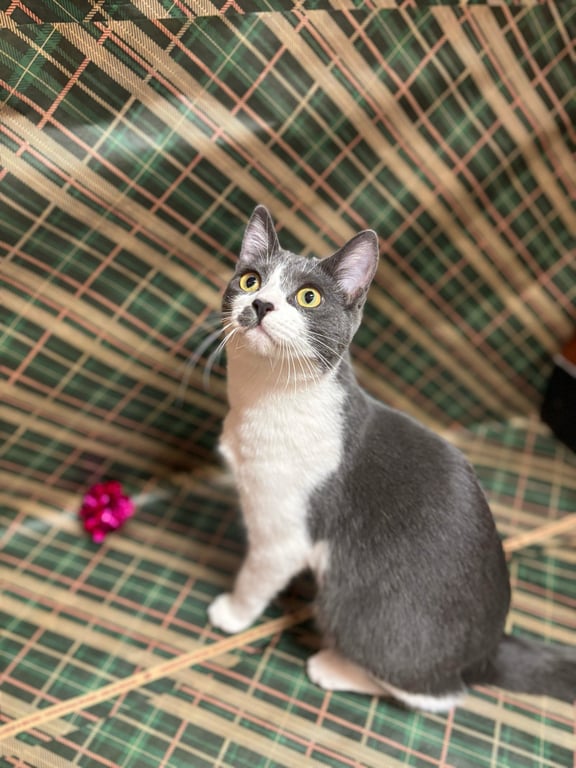 Not Mixed Breed Not Declawed No Special Needs Color: Gray and White Short Coat