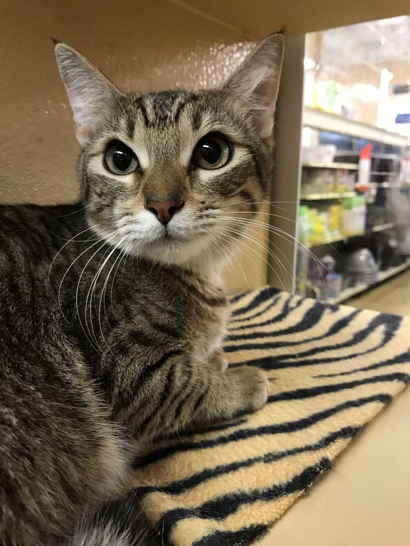 Tiggie is a young female Domestic Short Hair (medium) available for adoption at Beyond Nine Cat Rescue in Oakland Park, FL.
